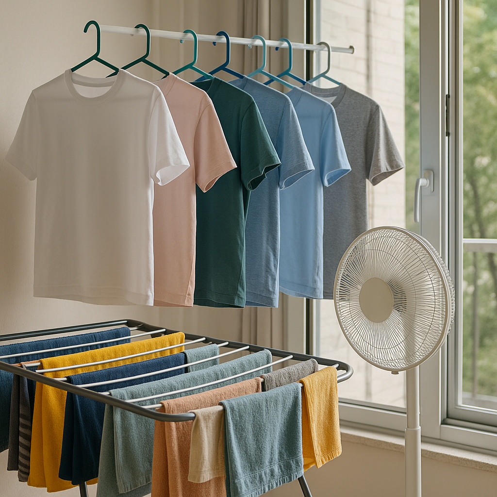 여기에 하나 더 팁을 드리자면, 빨래를 널 건 방에 선풍기를 틀거나 제습기를 함께 켜두면 공기 흐름이 훨씬 좋아지고 습기가 빨리 빠져요. 빨래 사이 간격이 충분히 넓으면 이 바람과 건조 기구의 효과가 배가돼요.