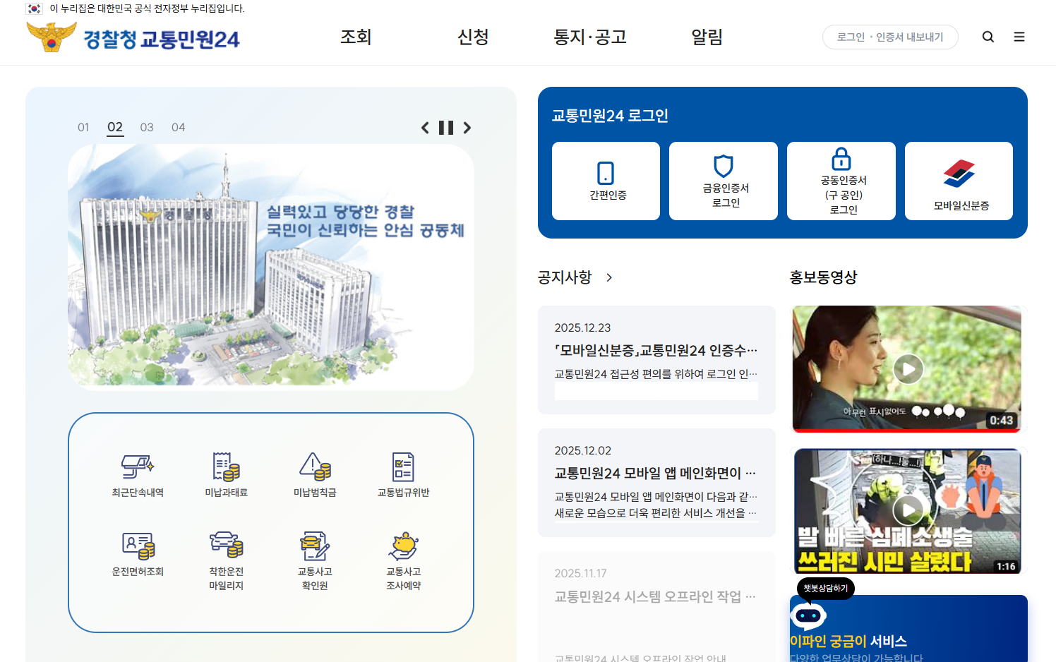- [경찰청 교통민원24(이파인)] 홈페이지 접속 또는 앱 실행