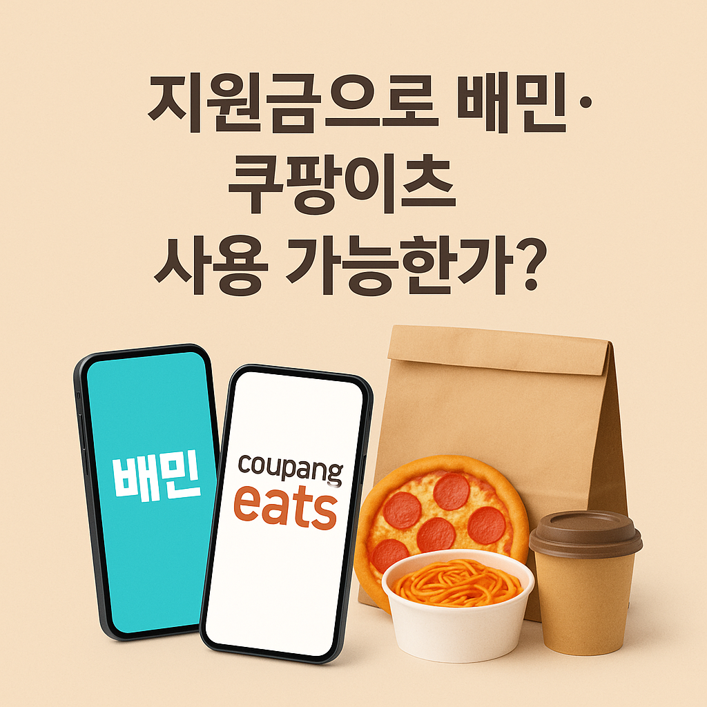 항목지원금 사용 가능 여부사용 방법배달의민족(배민) 가능 (단, 조건 있음) 음식 수령 시 직접 카드 결제만 가능 쿠팡이츠 불가 (2025년 7월 기준) 사용 불가 ※ 지역: 부산 기준