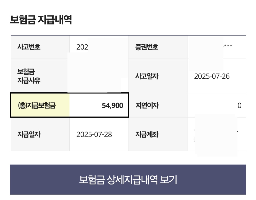 ✔️ 보험금 지급 내역도 항목별로 투명하게 확인할 수 있었습니다.