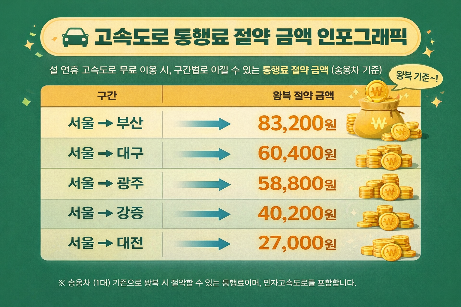 2026 설날 고속도로 통행료 면제 완벽 정리! 2월 15~18일 무료 + 꿀팁 대공개